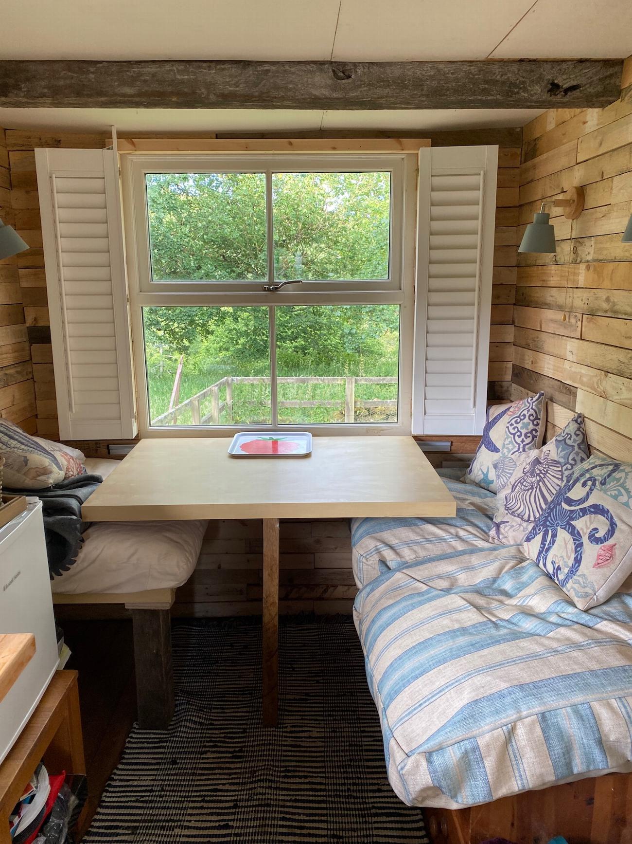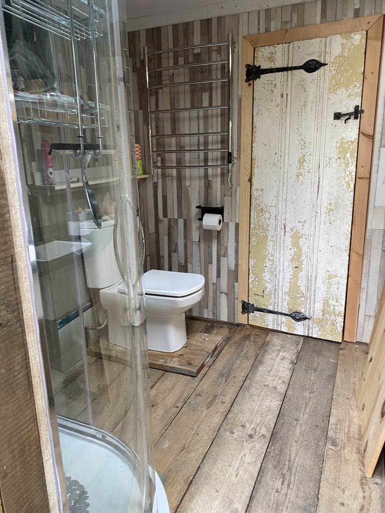 Experience the cozy charm of a double shepherds hut for a truly unique and intimate stay. The separate shower/WC ensures privacy and convenience during your retreat.