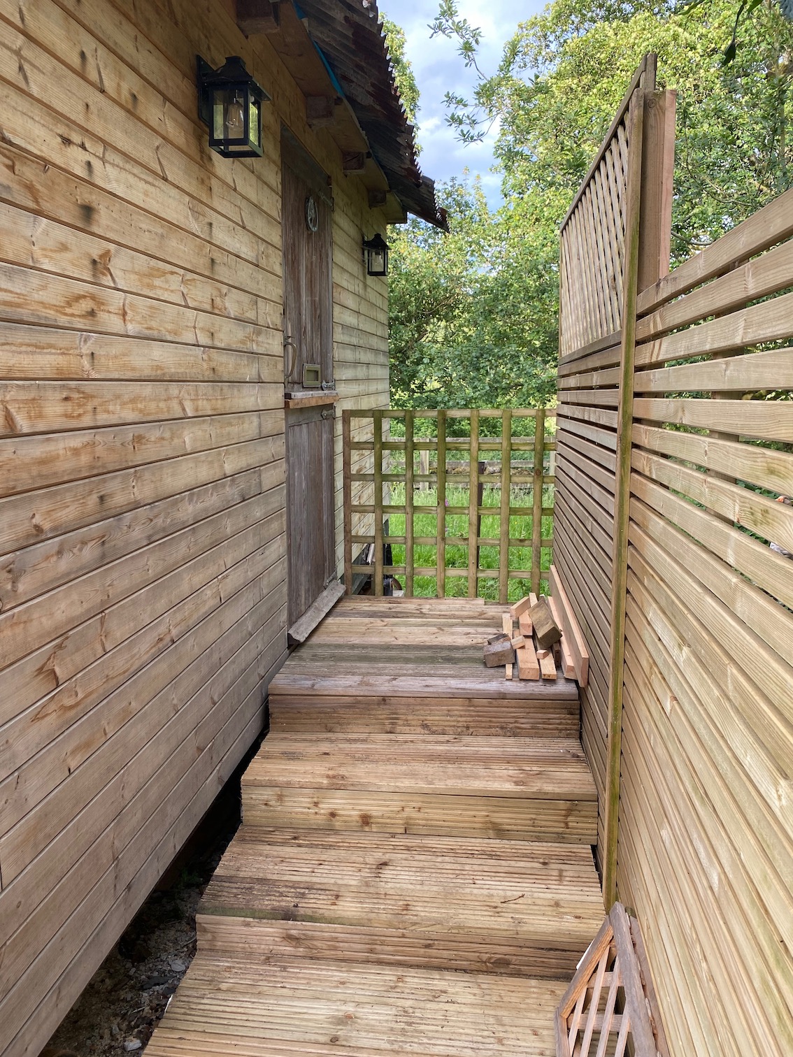 Recently completed the well insulated cedar clad Shepherds Hut has simple cooking facilities, fridge and sink as well as ample sleeping room for two with panoramic but secluded views towards the How Stean Gorge. There is also be a private outdoor deck/dining area with gas barbeque. The Shepherds Hut has it's own dedicated spacious Showerroom and WC just a few metres away from the Hut.Booking Enquiry